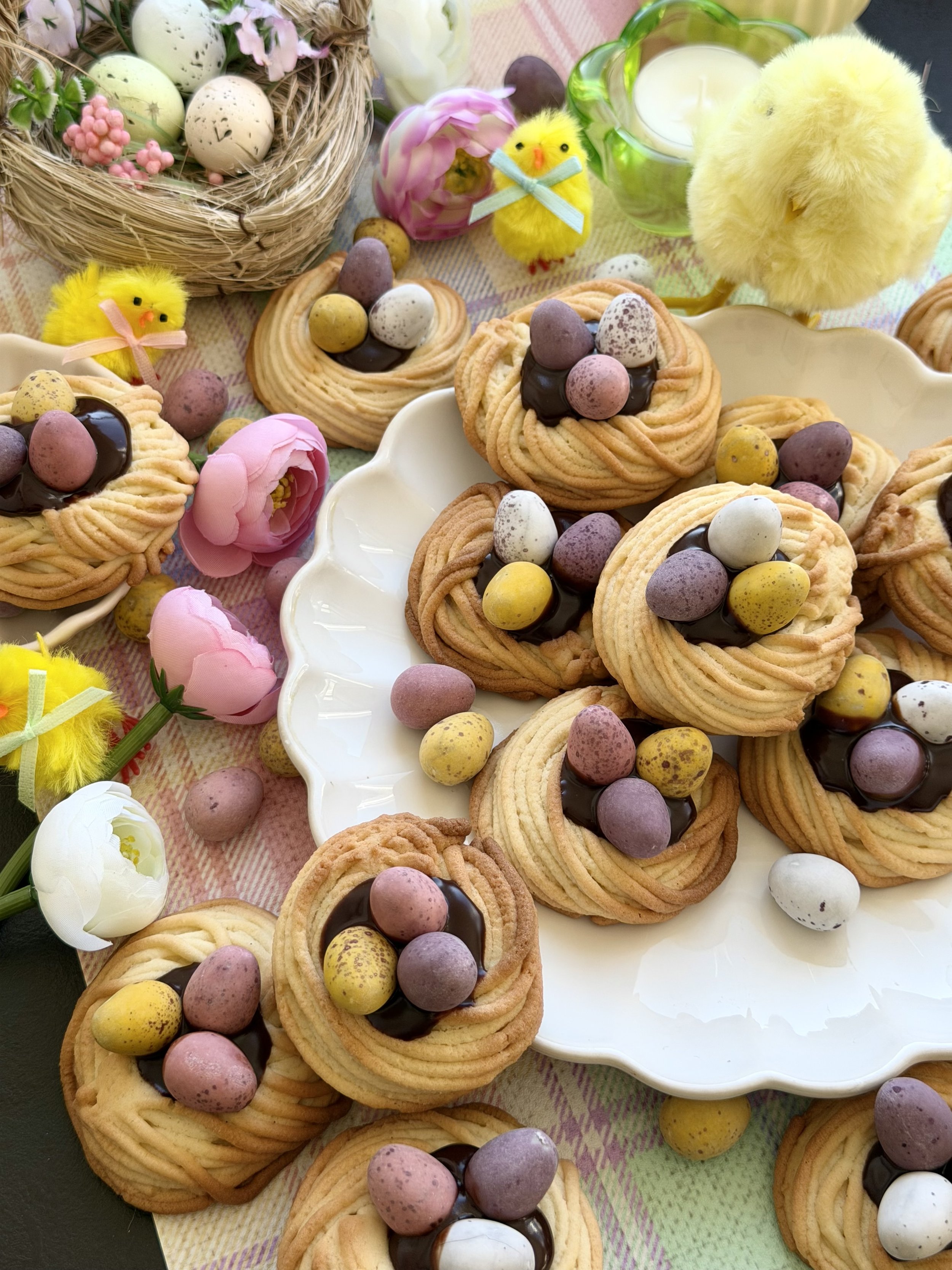 These Bird’s Nest Cookies are a playful twist on the classic Easter treat: and definitely not made the usual way. Using a simple garlic press, the dough is transformed into delicate, twig-like strands that bake into the most beautiful little nests with an irresistibly crisp, buttery texture.